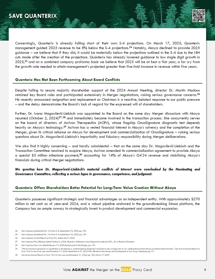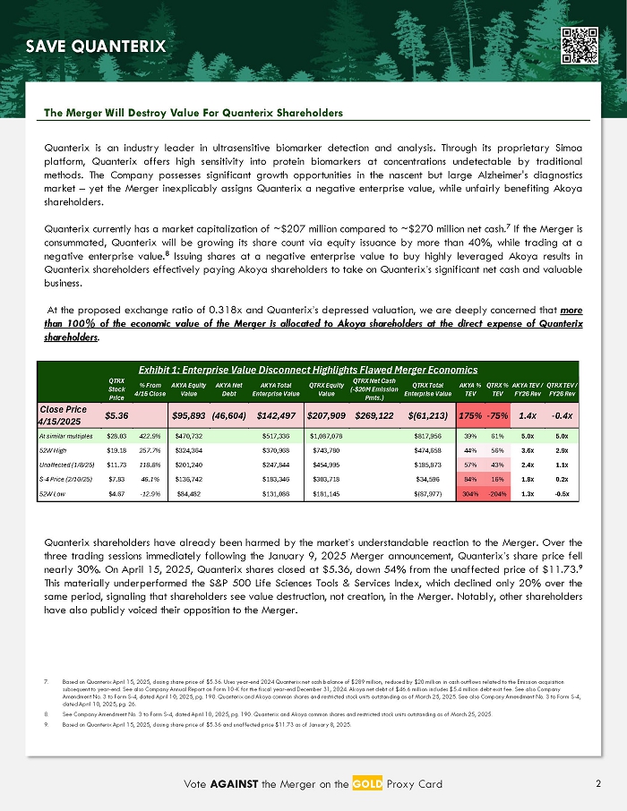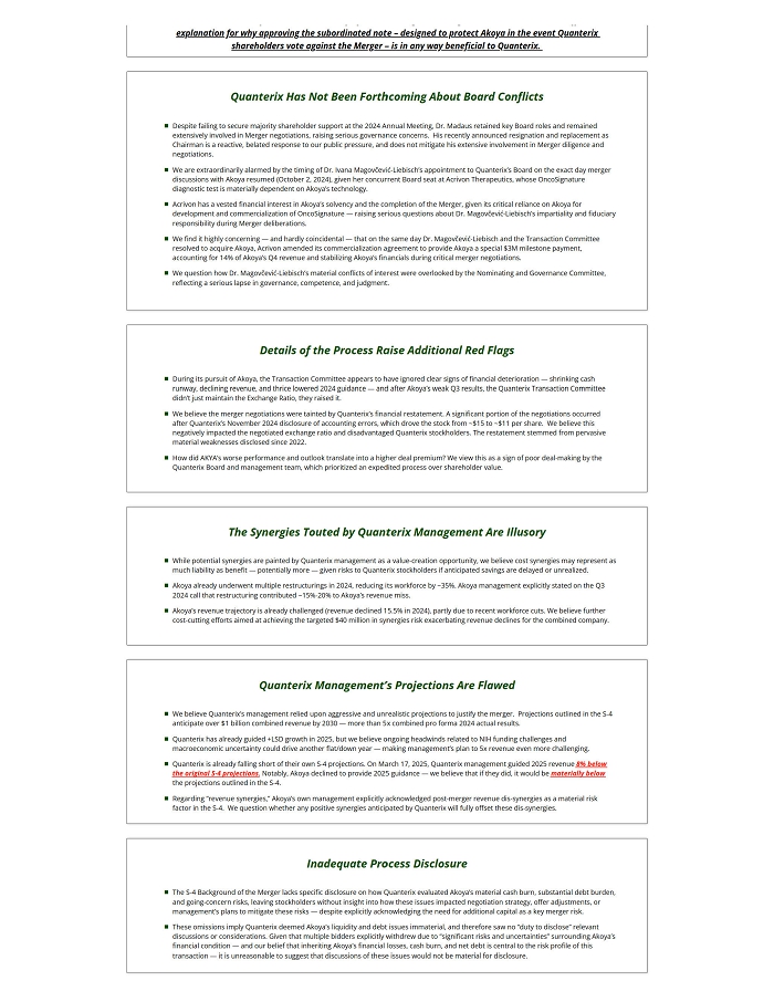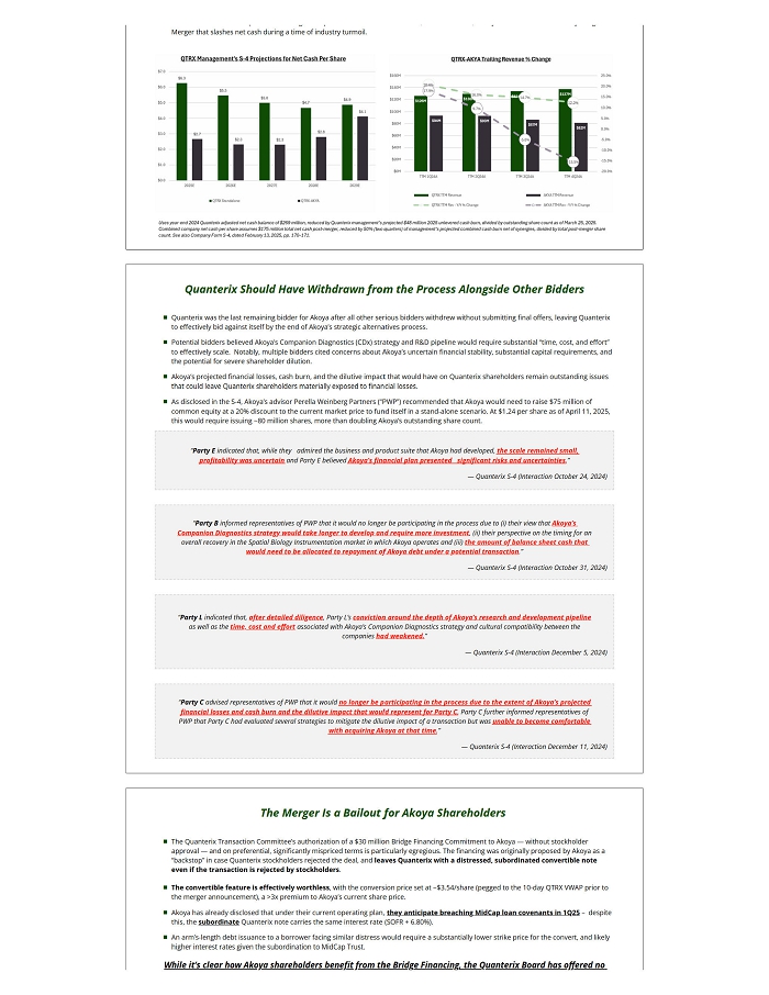 Notes Deeply Unfair Merger is Effectively a Bailout for Akoya at the Expense of Quanterix Shareholders