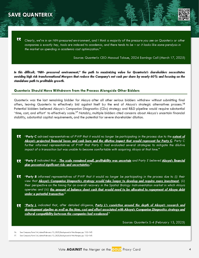 Outlines Concerns Around Fundamentally Flawed Transaction Process and Conflicts of Interest Among Quanterix Board Members