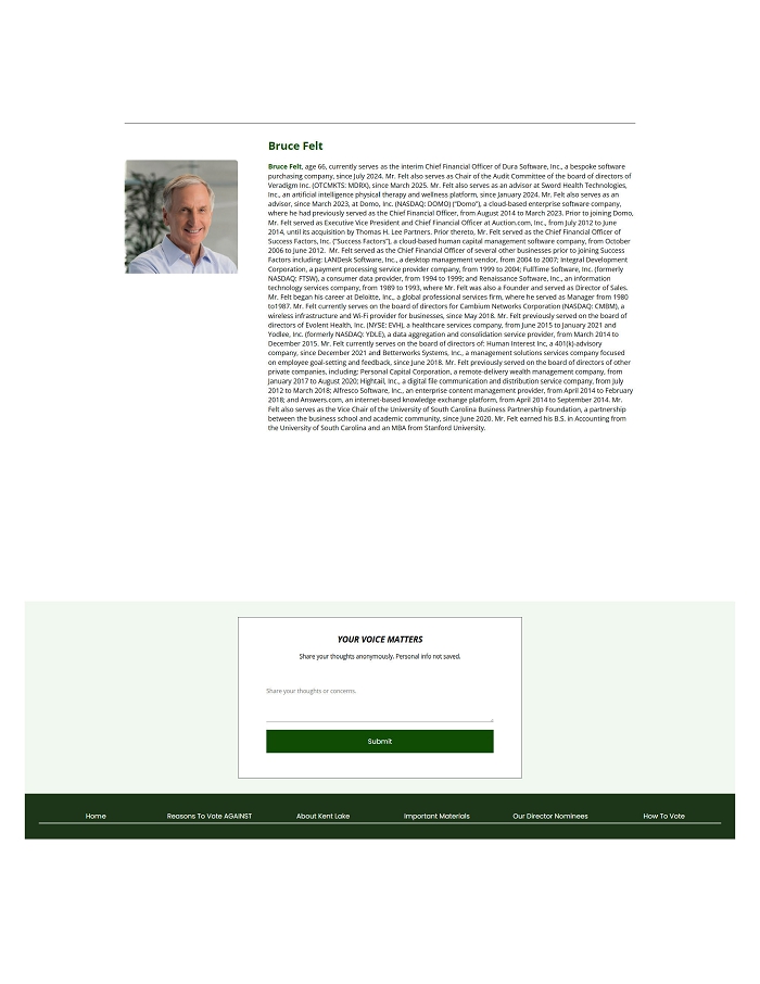 Item 1: On April 17, 2025, Kent Lake Partners issued the following press release and delivered a letter to stockholders of the Company. The full text of the letter is attached hereto as Exhibit 1 and is incorporated herein by reference.